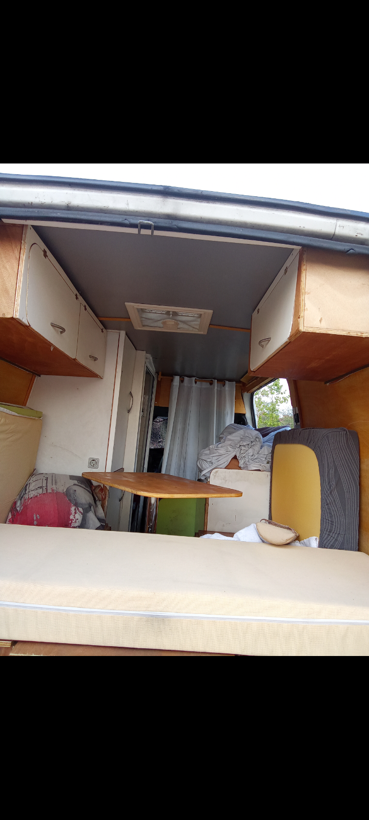 Todo el mobiliario de la furgoneta se construyó siguiendo la misma idea: aprovechar al máximo el espacio disponible, usar materiales sencillos y resolver cada mueble según su función real. No hubo planos cerrados ni soluciones de catálogo, sino decisiones tomadas sobre la marcha, midiendo, probando y corrigiendo hasta que todo encajó. El resultado es un conjunto de muebles hechos a mano, pensados para el uso diario y adaptados a las limitaciones reales de la furgoneta, tanto en espacio como en medios.
