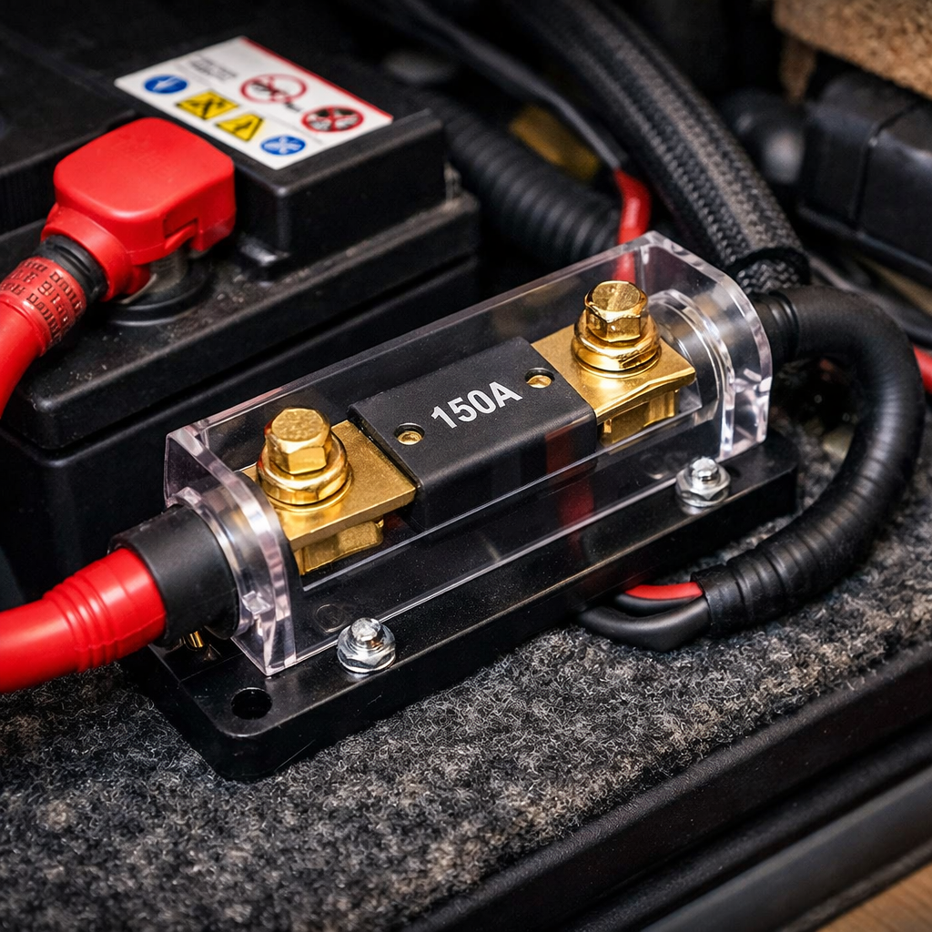 | Fusible ANL | 40A – 500A | Inversores grandes, batería principal | Soporta corrientes altas, muy fiable | Entre batería auxiliar e inversor |